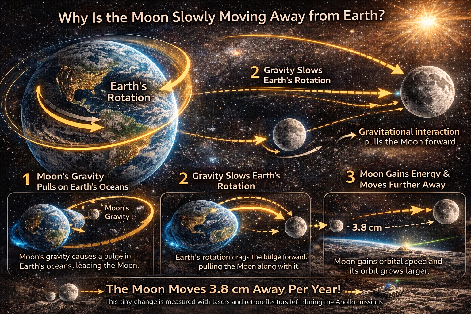 달은 늘 그 자리에 있는 것처럼 보인다. 하지만 우주에서는 아주 작은 변화가 수억 년 동안 쌓여 거대한 차이를 만든다. 달이 멀어지는 현상은, 우주가 얼마나 느리지만 확실하게 움직이고 있는지를 보여주는 가장 가까운 증거일지도 모른다.